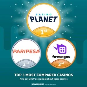 This week’s selection features casinos that accept PayPal as a payment method and other popular e-Wallets as well. One even goes beyond to accept cryptocurrencies. Let’s take a closer look at the Top 3 Most Compared Casinos this week.