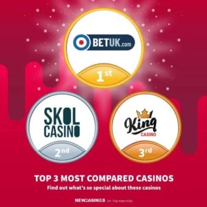 This week we have UK players taking the lead and comparing more casinos lately. Let’s take a closer look at the Top 3 Most Compared Casinos this week.