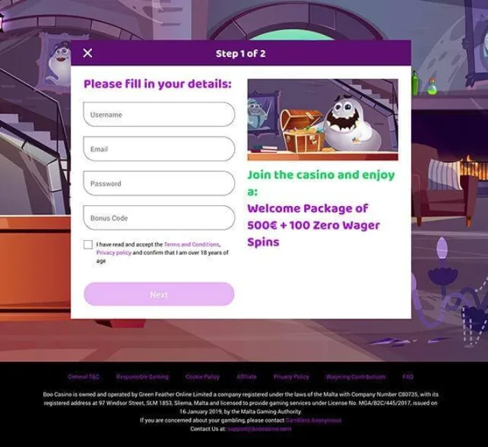 Boo Casino is owned and operated by Green Feather Online Limited. This Malta-based company runs its own gaming platform designed to suit operators’ individual needs, equipping them with key tools and features. This incorporates payment facilities, casino management software and more. Boo Casino is licensed by the Malta Gaming Authority.