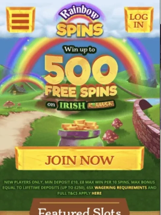| Claim Welcome Offer | Win up to 500 Free Spins on 9 Pots of Gold | Only Available for UK Players | Up to 500 Spins |