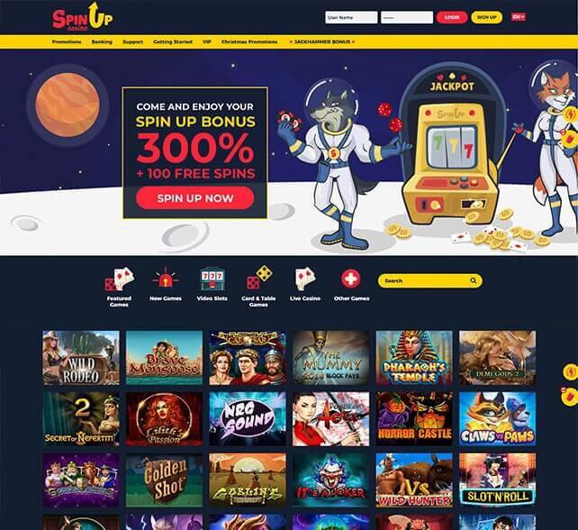 Spin Up Casino features a wonderful, great looking and easy to use website that is not just attractive but quite easy to use as well. It features an orange and red theme, with a dark background that makes everything stand out.